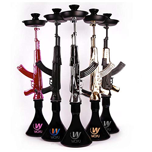 Wenn Sie jemals eine moderne Huka wollte, dass sieht aus wie ein AK47, jetzt ist Ihre Chance. Das AK47 shisha Rohr verfügt über eine modernen Stil Vase, die seinen einzigartigen Stamm und bietet ein großes Raucherlebnis für alle ergänzt. Die AK47 Huka ist in einem Einzelhandels Stil Box gespeichert es tragbar für einfache Reise und Schutz machen und kommt als compete Shisha Set inklusive Shisha Tongs, Keramiknapf, Gummidichtungen, Passende Waschbar Silikon Shisha Schlauch, und Setup-Anweisungen. AK47 Hookah Rohre haben Mehrschlauchfähigkeit und können aus einer einzigen Schlauch Wasserpfeife in einen 2-Schlauch Hookah durch Verwendung Large Chinese Schlauchadapter Stem, die das Auto-Dichtungssystem enthalten, umgewandelt werden. Das Auto Seal System eliminiert die Notwendigkeit Gummistopfen und Flip-Kappen zu verwenden, wenn mehrere Benutzer das Rauchen der Wasserpfeife sind. Diese Narguile kann sowohl für dekorative und Rauchen Vergnügen verwendet werden, Unterhaltung seit Jahren bieten zu kommen.
