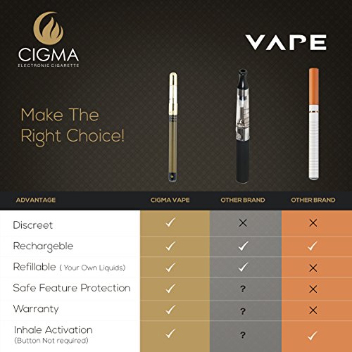 Wir empfehlen Ihnen die Verwendung der 10ml Liquids von Cigma. Die Einfüllspitze des Cigma-Liquids eignet sich perfekt dazu, um die Tanks zu befüllen. Außerdem werden nur die erlesensten Aromen von sehr guter Qualität zum Verkauf angeboten, um Ihnen das beste Dampferlebnis garantieren zu können. (Die Cigma Vape enthält keine Nachfüllflaschen)