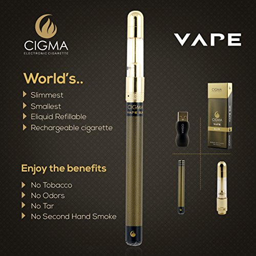 Details: Cigma Vape Slim Schwarz | Die Kleinste und Dünnste, Auflad- und Nachfüllbare E-Zigarette der Welt | E-Zigarette Starterset | E Shisha | Wiederaufladbare Batterie | Auffüllbar | Verdampfer