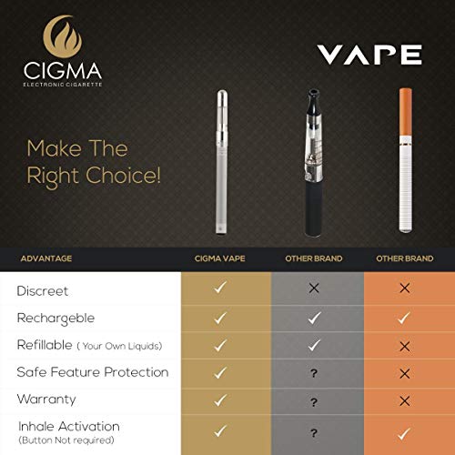 Wir empfehlen Ihnen die Verwendung der 10ml Liquids von Cigma. Die Einfüllspitze des Cigma-Liquids eignet sich perfekt dazu, um die Tanks zu befüllen. Außerdem werden nur die erlesensten Aromen von sehr guter Qualität zum Verkauf angeboten, um Ihnen das beste Dampferlebnis garantieren zu können. (Die Cigma Vape enthält keine Nachfüllflaschen)