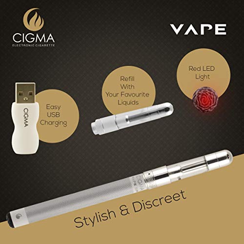 Cigma Vape Slim Weiß | Die Kleinste und Dünnste, Auflad- und Nachfüllbare E-Zigarette der Welt | E-Zigarette Starterset | E Shisha | Wiederaufladbare Batterie | Auffüllbar | Verdampfer
