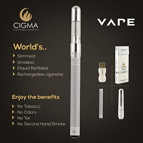 Details: Cigma Vape Slim Weiß | Die Kleinste und Dünnste, Auflad- und Nachfüllbare E-Zigarette der Welt | E-Zigarette Starterset | E Shisha | Wiederaufladbare Batterie | Auffüllbar | Verdampfer